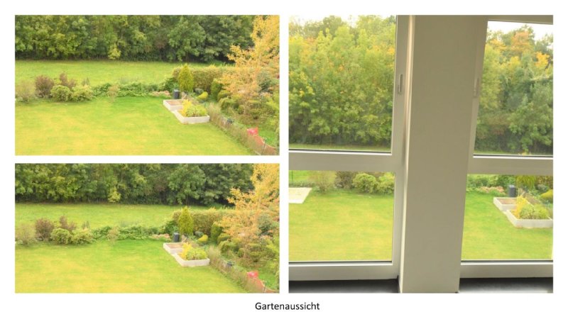 Neue Einbauküche mit Cerankochfeld und Backofen, Spülmaschine, Kühl-/ Gefrierkombination und dunstabzugshaube ist im Mietpreis inbegriffen. Sie ist zum Essplatz offen mit Blick in den uneinsehbaren Garten.