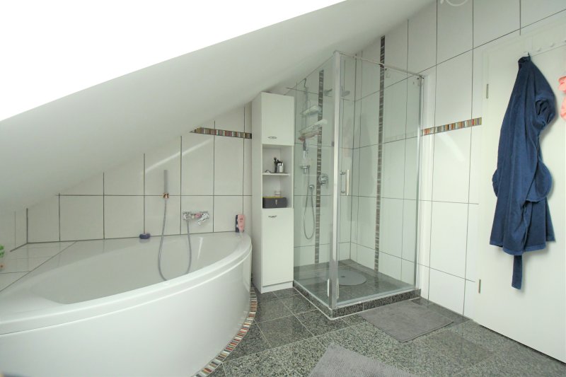 o Eine ist mit einem Wannenbad, dupple waschtisch und Waschmaschinenanschluss