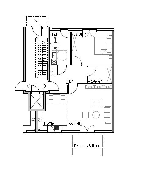 Barrierefreie 2 Zimmer-Wohnung, Wohnzimmer inkl. Küchenbereich, Schlafzimmer, Abstellraum, Balkon, Aufzug, Fliesen- und Vinylfußböden, Pkw-Stellplatz kann mit angemietet werden.