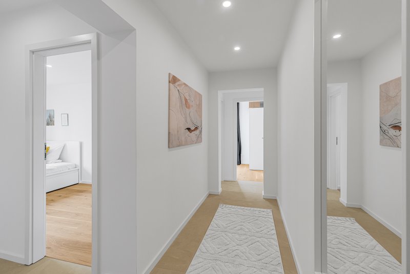 Innerhalb der Wohnung gibt es 3 helle und attraktive Zimmer ausgestattet mit Echtholzparkett. Zimmer 2 hat einen Balkonzugang.