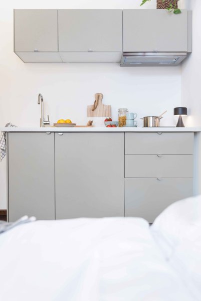 Ein gemütliches Bett, ein Schrank für Deine Klamotten, ein Schreibtisch zum arbeiten, eine Kleinigkeit kochen in der Kitchenette und Dein eigenes Duschbad – in unseren All-inclusive Vintage Apartments kannst Du direkt drauf los wohnen.
