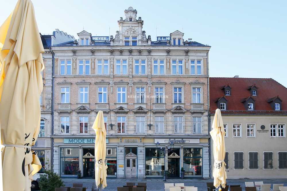 Familientradition am Hauptmarkt in Zwickau. Seit 2001 erstrahlt das bekannte Modehaus nach aufwendiger Restaurierung als „Mode Meyer“. Dabei wurden Details wie das Familienwappen und die Fassade saniert und traditionsbewusst erhalten.