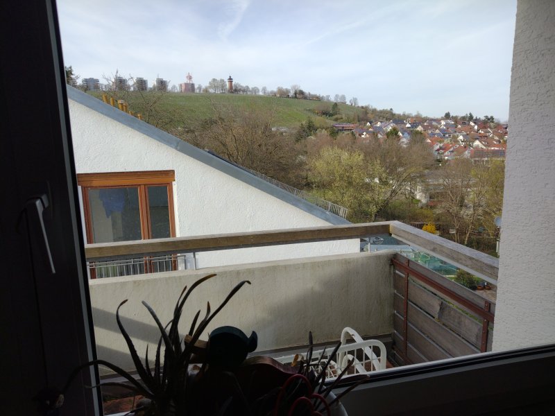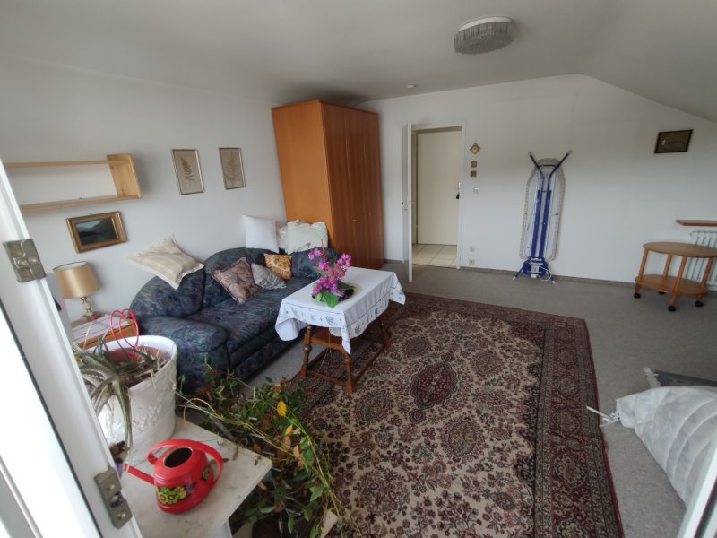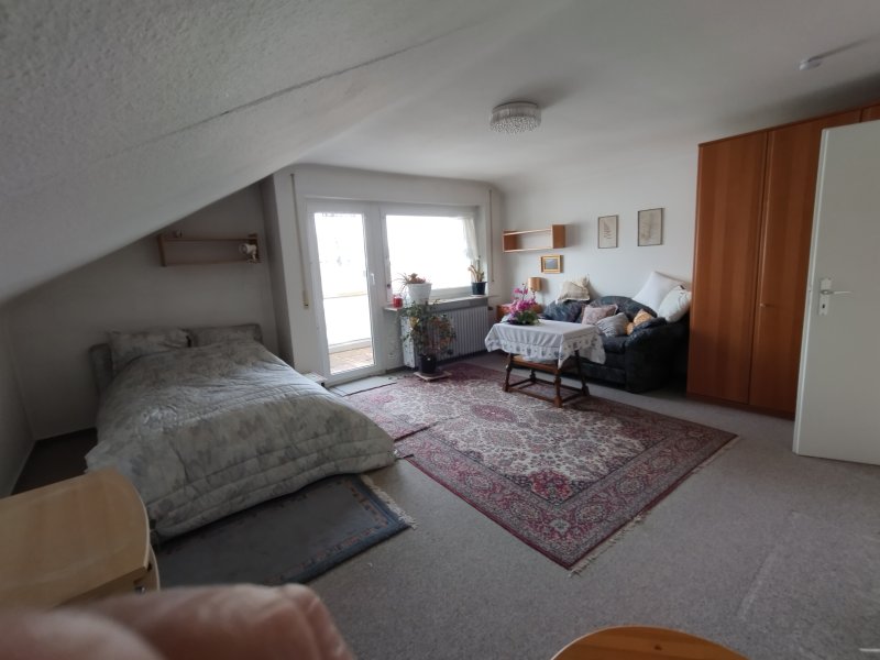 Großes Zimmer mit ca. 19 m2, kleiner Flur, DU/WC, kleiner Küchenartiger Raum sowie ein Balkon mit Blick auf die Weinberge.