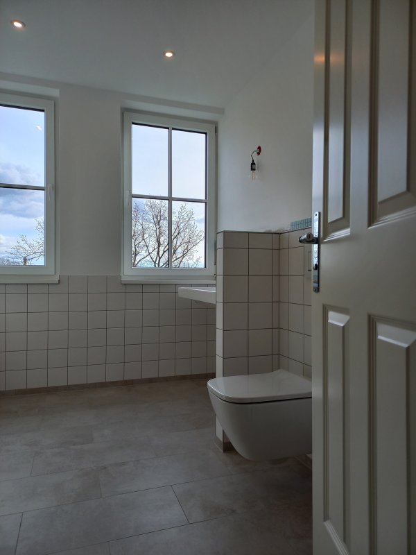 Die gefliesten Bereiche Wohnküche und Bäder haben Fußbodenheizung.
