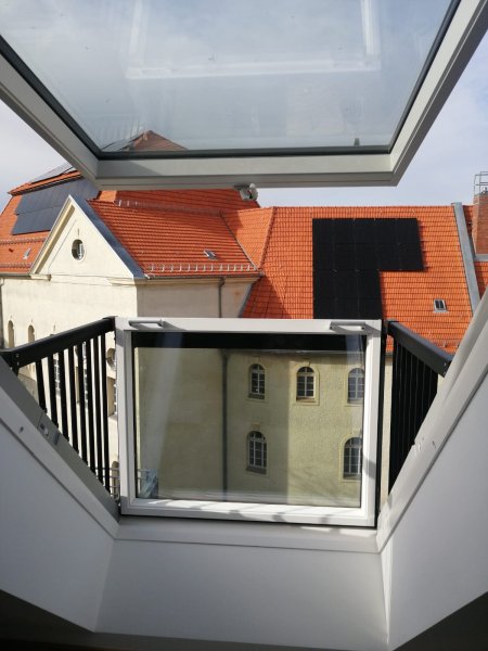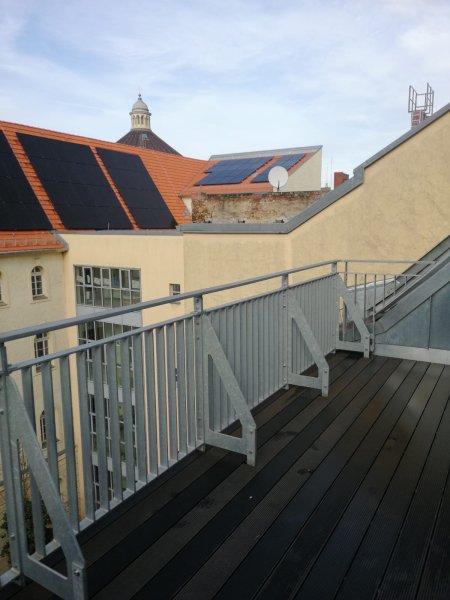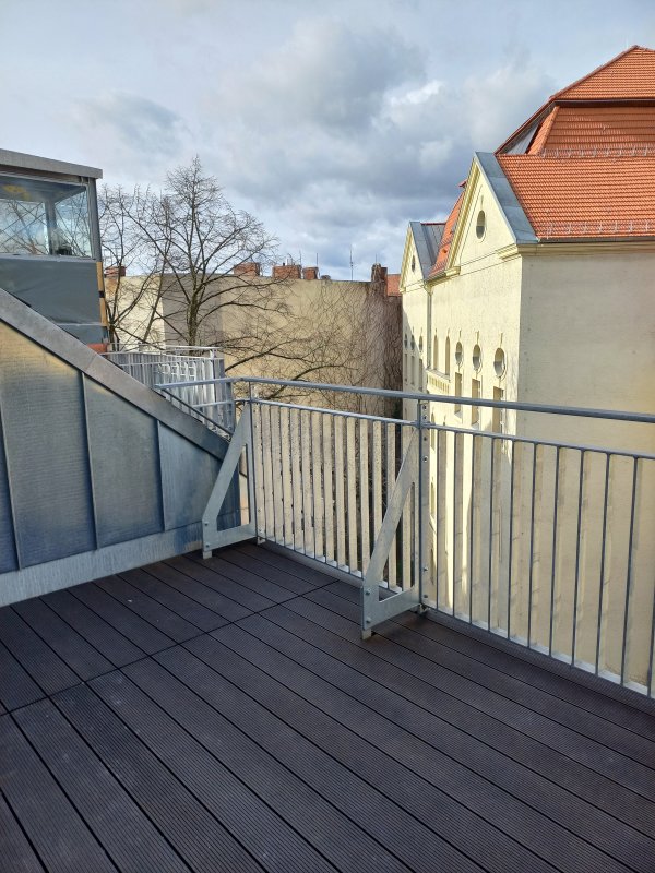 Von der Wohnküche geht der große Balkon ab, von dem Sie den Fernsehturm sehen können und den Sie an sonnigen Tagen zum zweiten Wohnzimmer machen können. Eine Besonderheit ist, dass es nicht nur einen Balkon gibt, sondern Sie auch den Garten am Haus zu Ihrer Erholung nutzen können. Ihnen steht außerdem eine Einbauküche zur Verfügung.