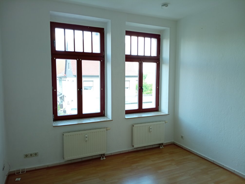 Die Wohnung befindet sich in der 1. Etage im Vorderhaus eines Mehrfamilienhauses und verfügt über zwei Zimmer (davon ein Durchgangszimmer mit Einbauküche - inklusive Elektrogeräten - siehe Bilder), Bad gefliest mit Wanne und mit 2 Fenstern, Flur, Abstellraum und Keller. Ausreichend Stellplätze sind vor dem Haus verfügbar.