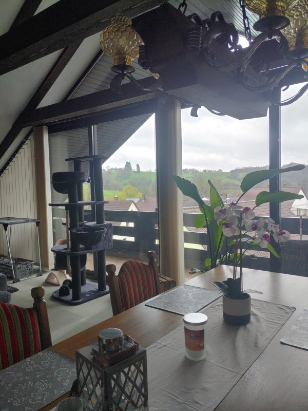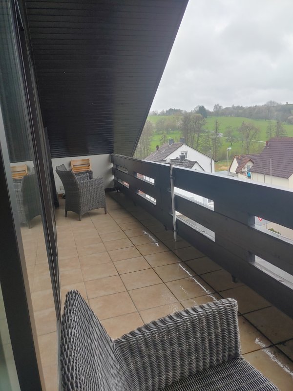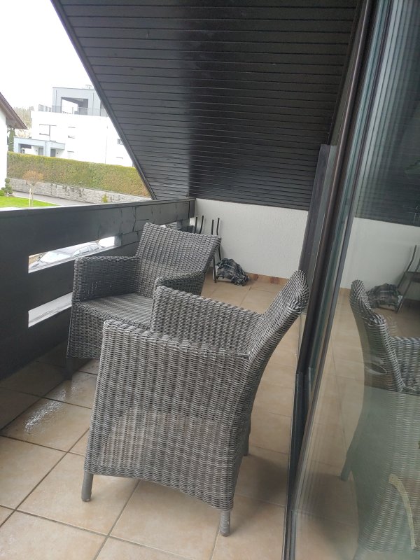 Balkon überdacht mit bodentiefen Fenstern im Wohnzimmer und Schlafzimmer
