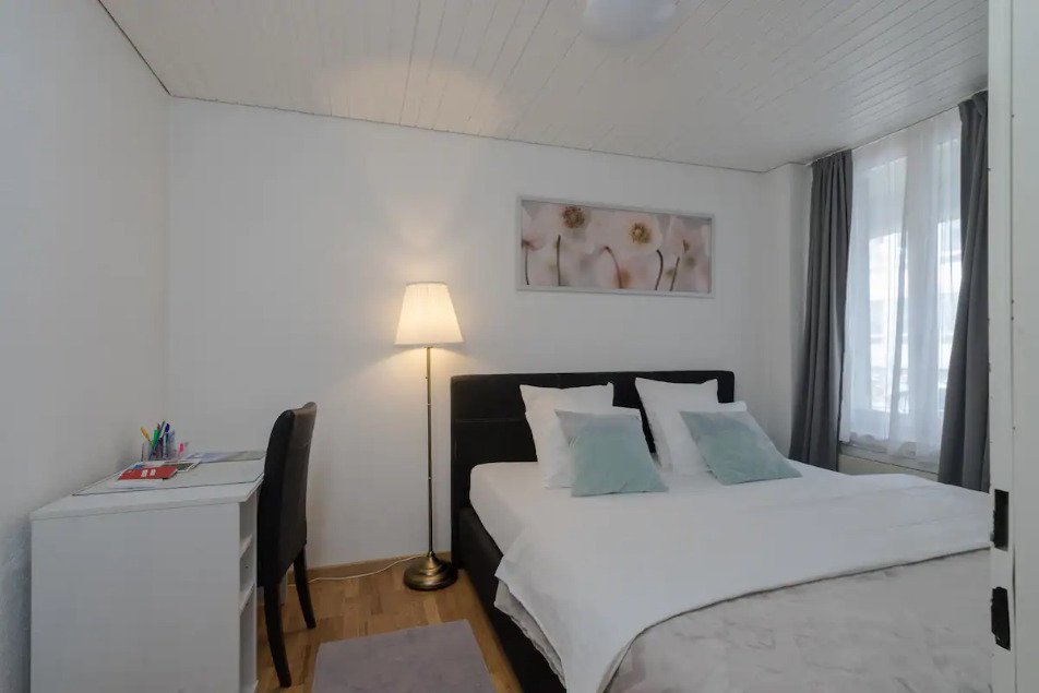 Ca. 14m² große Zimmer,Das Zimmer ist mit neuen Möbeln ausgestattet, wie z.B. Schrank, Bett, Matratze, Schreibtisch und Kommode. Es verfügt über einen Fernseh- und Internetanschluss. Durch den Charme einer Altbauwohnung verfügt das Zimmer über eine schöne hohe Decke. Die Lampe enthält einen Bluetooth-Anschluss bei der man Musik hören kann. Es ist mit sehr großen und schalldichten Fenstern und elektr. Rolläden ausgestattet, so dass man extreme Ruhe verspürt.