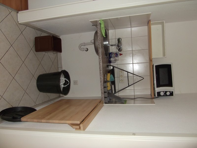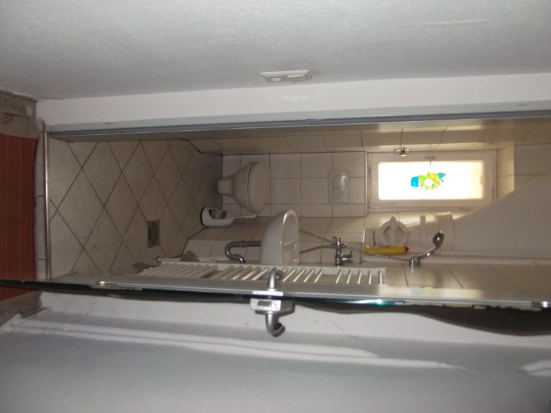 Eine Mini-Wohnung - kleiner geht nicht - aber mit drei separaten Mini-Zimmerchen, einem Mini-Bad mit Bodenablauf und Mini-Waschbecken, einer Mini-Kochzeile im Flur,