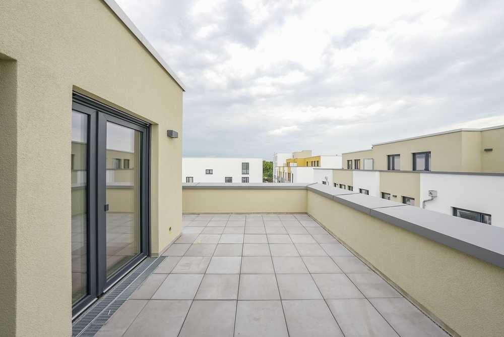 Der offene Küchenraum mit komplett neuer, moderner Einbauküche schafft ein ausgesprochen angenehmes Wohnambiente. Das Highlight der beiden Schlafzimmer ist zweifellos der großzügige Schnitt. Eines der Schlafzimmer bietet direkten Zugang zur sonnigen Dachterrasse. Das elegante Bad ist mit einer Badewanne und einem WC ausgestattet, zusätzlich verfügt die Wohnung über ein Gästebad mit Dusche und WC. Besonders bequem ist auch der Waschmaschinenanschluss in Ihrer Wohnung. Die Dachterrasse stellt höchste Wohn- und Lebensqualität sicher.