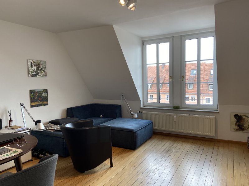 Die 2 Zimmerwohnung befindet sich in einem zentralgelegenen und top gepflegten Mehrfamilienhaus in einer ruhigen Seitenstraße nähe des Nürnberger Hauptmarkts. Im 3. Stock gelegen, bietet das Wohnzimmer mit seinen großen Fenstern einen fantastischen Blick über die Dächer der Altstadt und auf die Türme der Lorenzkirche. Die originalen Echtholzdielen und das modern geflieste Bad versprühen einzigartigen Charme. Doch das ist noch nicht alles: Der idyllische Innenhof lädt dazu ein, dem urbanen Trubel zu entfliehen und in entspannter Atmosphäre abzuschalten. Ein echtes Juwel in Nürnbergs City!