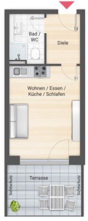 Wohnen in einer modernen vollmöblierte 1-Zimmer-Stadtwohnung mit Südterrasse in zentraler Lage in Fürth.