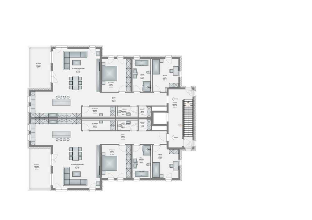 Passend zum Charakter des Hauses sind gehobene Ausstattungsvarianten gegeben. Das Gebäude besteht aus insgesamt sieben Wohneinheiten: jeweils zwei Wohneinheiten im EG, 1.OG, 2.OG und ein Penthouse. Großzügige Fensterpartien und Terrassen geben ein befreiendes Gefühl von Weite und Helligkeit. Blickrichtung und Lichteinfall innerhalb und außerhalb der Wohnung spielen eine entscheidende Rolle. Durch die optimale Positionierung des Stadthauses sind alle Wohnungen lichtdurchflutet und verbreiten ein angenehmes und großzügiges Raumgefühl.