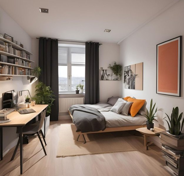 Dein Zimmer: Hell, freundlich und mit viel Platz zum Leben, Lernen oder einfach Relaxen. Ob unmöbliert, teilmöbliert oder voll möbliert – ganz wie du es magst.