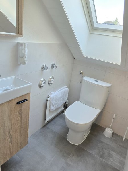 •Duschraum mit Dusche, WC, •Waschbecken und Spiegel