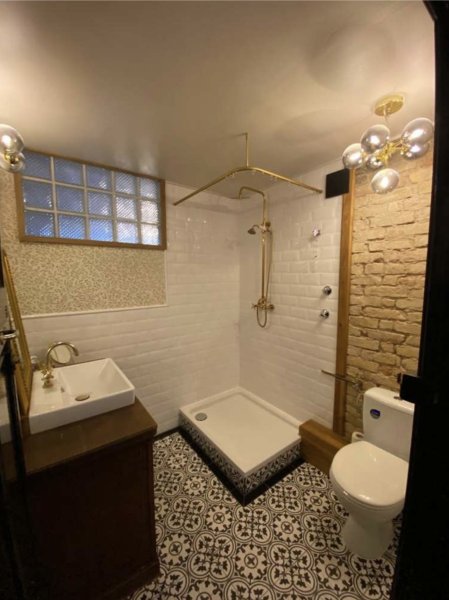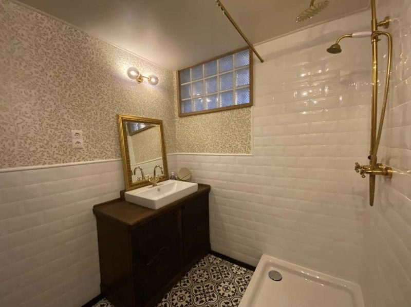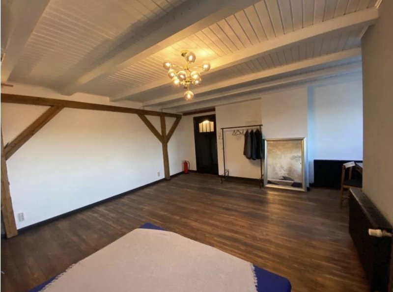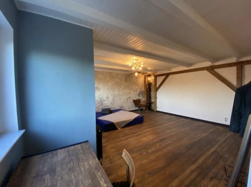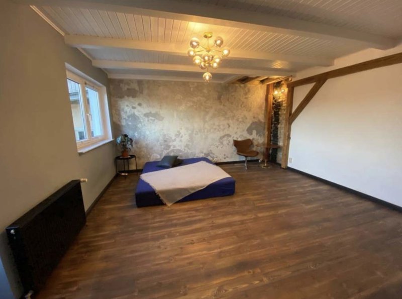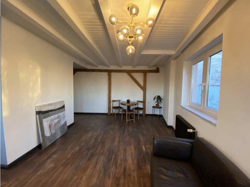 Die 67 Quadratmeter große Wohnung besticht durch eine luxuriöse Innenausstattung mit freigelegten Ziegeln, originalen Holzbalken und Echtholzparkett. Sie kombiniert den Charme einer Altbauwohnung mit modernem Innendesign.