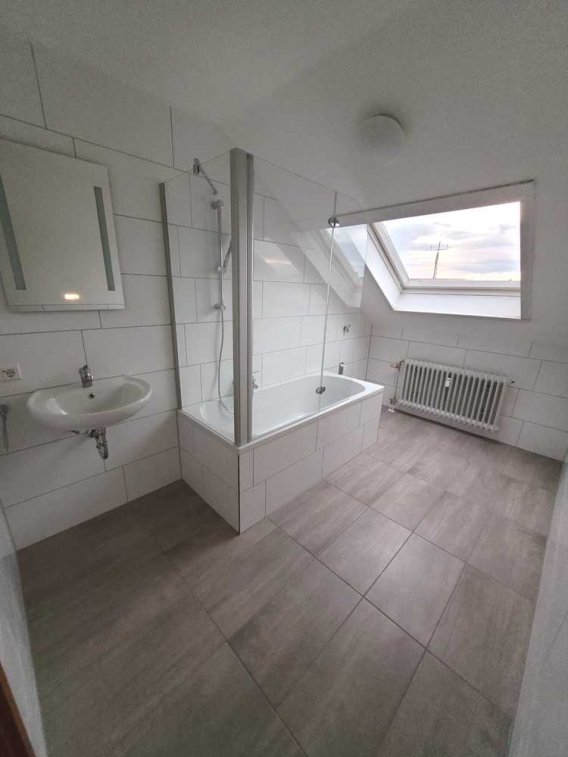 Das Tageslichtbadezimmer wurde gerade neu saniert.