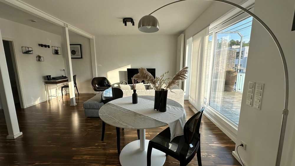 Neu renovierte, unmöblierte Penthouse Wohnung mit 2,5 Zimmer (1 Zimmer ist als Ankleide mit Einbauschrank konzipiert). Die Wohnung befindet sich in unmittelbarer Umgebung zur Königsstraße und dem Hbf.