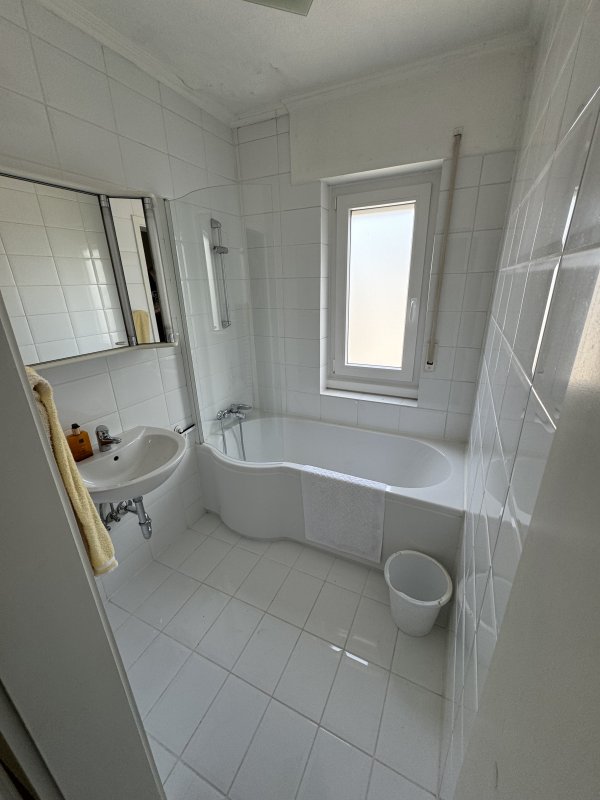 Das Hauptschlafzimmer ist geräumig und ruhig gelegen, ideal für erholsame Nächte. Ein weiteres Zimmer kann flexibel als Kinderzimmer, Büro oder Gästezimmer genutzt werden. Das Badezimmer ist stilvoll gestaltet und verfügt über eine Badewanne sowie eine separate Dusche. Zusätzlich gibt es ein Gäste-WC für zusätzlichen Komfort.