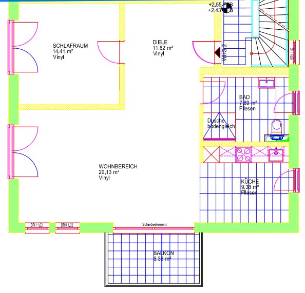 Im Erdgeschoß steht der Hausgemeinschaft ein Fahrradraum sowie ein Wäscheraum zur Verfügung. Ebenso befinden sich dort für die Dachgeschoßwohnung 2 PKW- Stellplätze und der Kellerraum.