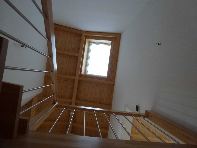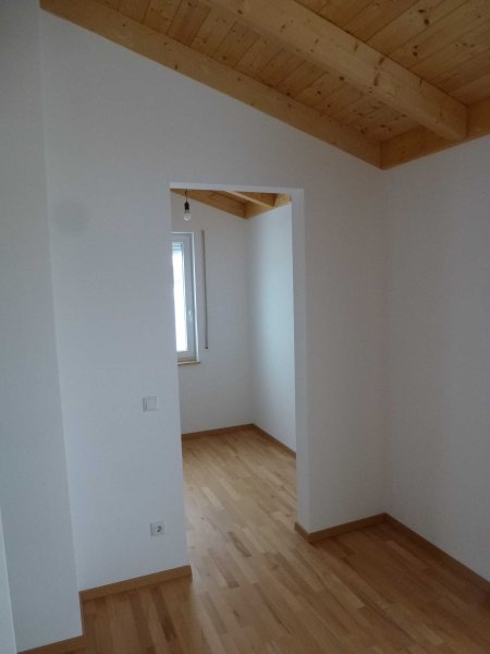Im Obergeschoss ist das Elternschlafzimmer mit Ankleide, das große Bad mit Wanne, Dusche und Toilette sowie zwei Kinderzimmer. Von beiden Kinderzimmern kann man den Balkon betreten.