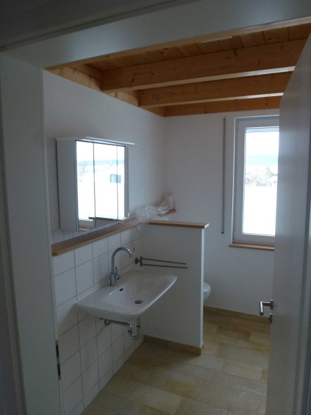 Hauswirtschafts-/Technik-Raum, das Gäste-Bad mit Dusche und Toilette befindet sich im Erdgeschoss. Küche ist eingebaut.