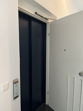 Aufzug direkt in das Apartment, uneinsichtige 40 qm große Dachterrasse, bodentiefe Fenster, Fußbodenheizung, Waschmaschine, Einbauküche, Möbliert, 7 qm Kellerabteil, hinzu buchbarer Tiefgaragen-Stellplatz