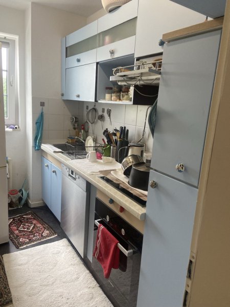 Diese Wohnung befindet sich in einer der besten Gegenden von Düsseldorf, im Stadtteil Hassels. Sie liegt im dritten Stock eines dreistöckigen Gebäudes (ohne Aufzug). Die Wohnung verfügt über einen großen Kellerraum und einen kleinen Abstellraum in der Wohnung. Zwei großzügige Terrassen, sorgen dafür, dass die Wohnung sowohl im Sommer als auch im Winter sehr hell ist. Während Sie auf der Terrasse Ihren Kaffee genießen, können Sie die angenehme Luft der Grünflächen auf beiden Seiten des Hauses genießen. Ein kleiner Markt befindet sich nur fünf Gehminuten entfernt, sodass Sie bequem zu Fuß dorthin gelangen können. Alternativ können Sie Ihr Auto auf dem kostenlosen Parkplatz dort abstellen und in den Geschäften und Supermärkten (Rewe, Norma, Penny, Rossmann) oder in der Apotheke einkaufen. Zudem können Sie sich in den Cafés eine köstliche Eiskreme oder eine leckere Mahlzeit gönnen. Falls Sie kein Auto haben, ist das überhaupt kein Problem (wir hoffen, dass Sie bald eines kaufen). Sie sind nur sieben Gehminuten vom S-Bahn-Halt der Linie S1 entfernt, und die Bushaltestellen, die in Richtung Düsseldorfer Innenstadt oder Hilden fahren, sind nur fünf Gehminuten entfernt. Das Haus verfügt über ein großes Wohnzimmer, das durch eine Holz-Glas-Tür vom Badezimmer und den Schlafzimmern getrennt ist. Die Küchenschränke sind himmelblau und in sehr gutem Zustand, sie stammen vom vorherigen Mieter und müssen für 1.000 Euro übernommen werden (ohne Elektrogeräte).