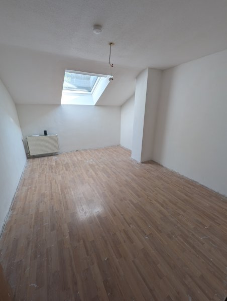 Die Wohnung besteht aus einem großen Küchen -Esszimmer, einem geräumigen Wohnzimmer, sowie 3 weiteren hellen Zimmern. Zusätzlich steht eine Garderobennische im Flur zu Verfügung. Unter dem Dach befindet sich ein Dachboden, welcher teils als Abstellmöglichkeit genutzt werden kann. Zusätzlich gibt es zwei kleine Nischen unter der Dachschräge in der Küche und im Wohnzimmer zum Verstauen.