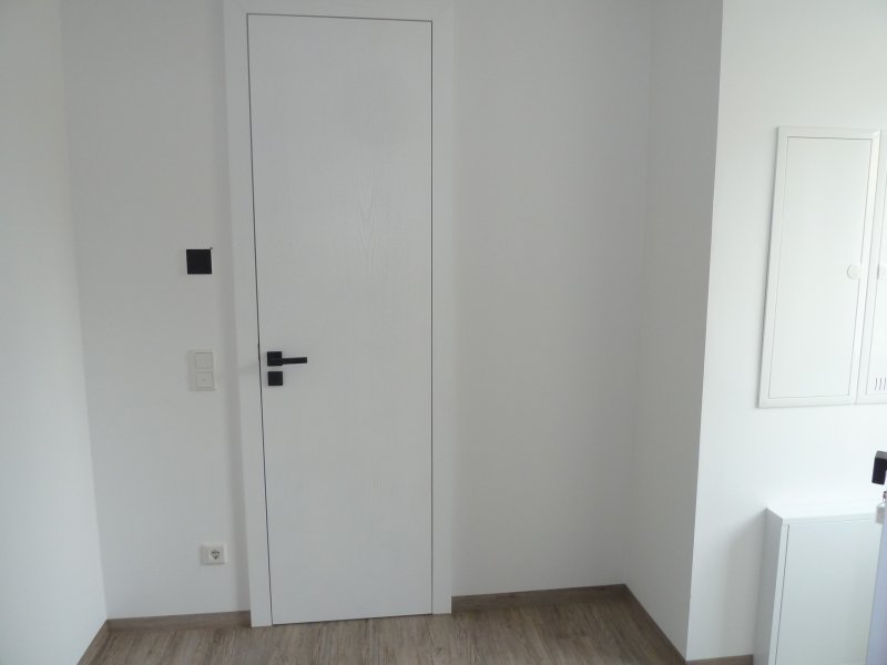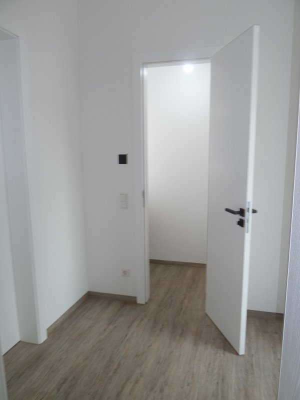 Hochwertige Materialien wurden durchgehend verwendet – Vliestapeten an allen Wänden, weiße Wandfarbe, edle Vinylböden, sowie flächenbündige Innentüren (2,25 m hoch).