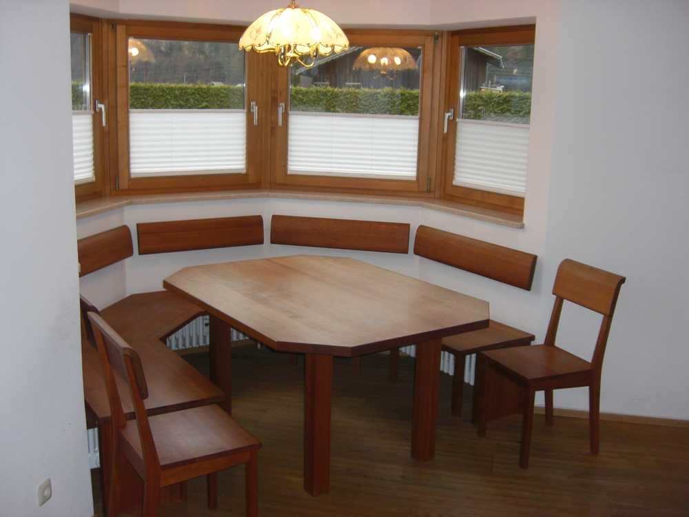 Besondere Details wie der edle Holzboden, welcher sich durch alle Räume zieht, der gemütliche Kaminofen im Wohnzimmer, die komplett ausgestattete Einbauküche, der Erker mit Eckbank und Esstisch oder das Bad mit Regenwalddusche versprechen angenehmes Wohngefühl.