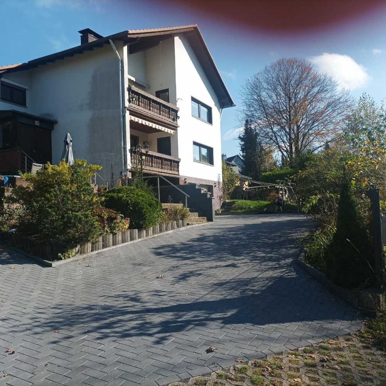 Die Wohnung liegt im Obergeschoss eines zwei Familienhauses.