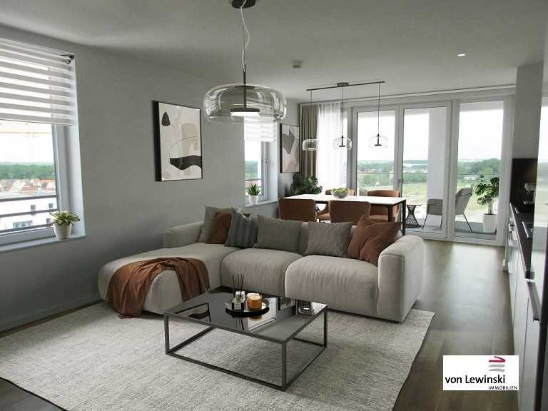 Dafür sorgen die großen Fenster, die eine offene, angenehme Atmosphäre erzeugen. Balkone, Loggien oder Dachterrassen laden dazu ein, die frische Luft zu genießen. Ein besonderes Highlight ist die offene Einbauküche in modernem, hellem Design. Sie bietet viel Stauraum und ist mit modernsten Elektrogeräten namhafter Hersteller ausgestattet.