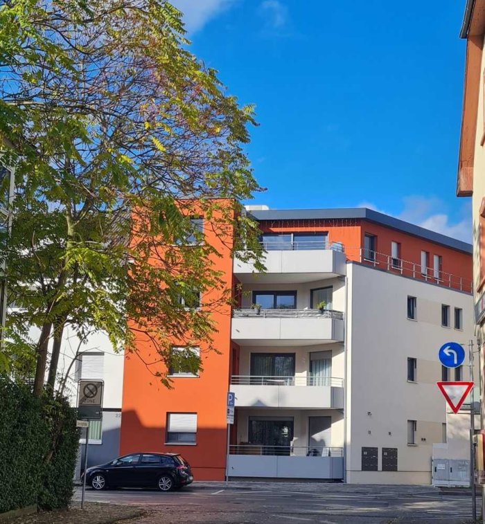 Die Drei-Zimmer-Wohnung liegt in einem 2020/2021 neu erbauten Mehrfamilienhaus gehobener Ausstattung (Design-Boden Eiche, Holzsockelleisten) mit insgesamt 8 Parteien in zentraler Lage in Mühlheim am Main. Raumaufteilung: Wohn-, Esszimmer mit offener Küche/ Kochinsel, Südbalkon, 1 Schlafzimmer mit Zugang zum Balkon, 1 weiteres Zimmer (Arbeitszimmer, Kinderzimmer), Bad/Dusche, separates Gäste-WC. Zur Wohnung gehört ein eigener, abschließbarer Kellerraum.
