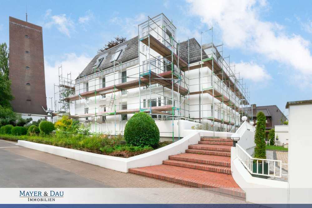 Das Highlight der Wohnung ist das Büro, das durch bodentiefe Fenster einen herrlichen Blick auf die Zwillingsvillen und das Zwischenahner Meer bietet. Zudem verfügt die Wohnung über ein großzügiges Schlafzimmer.