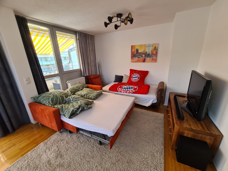zentral und sehr ruhig, da im Hintergebäude von der Straße entfernt. 5 Min. zu Fuß hinter der Bavaria, ca. 8 Min. zu Fuß zur Theresienwiese. U-Bahn und S-Bahn