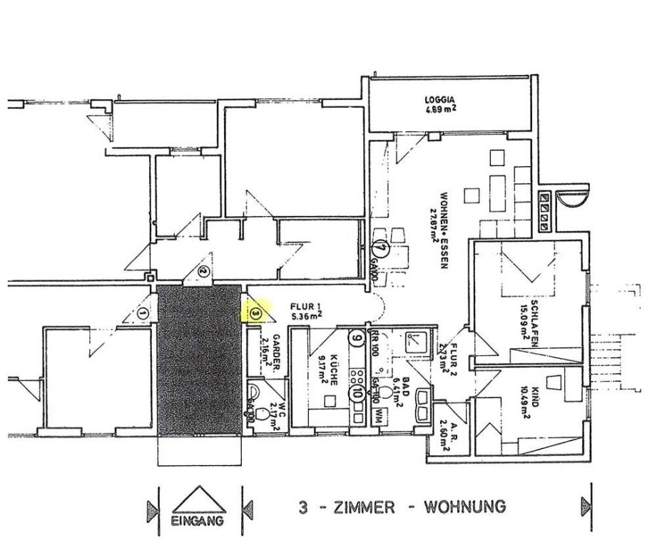 Die Wohnung besitzt ca. 87 qm Wohnfläche und bietet 3,5 Zimmer bestehend aus einem Wohn-Esszimmer, Schlafzimmer, Kinderzimmer oder Büro und einem kleinen Abstellraum. Zusätzlich ist das Haus voll unterkellert und der zugehörige Keller hat ca. 13 qm Kellerfläche.