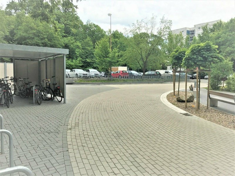 Die Wohnung befindet sich im 1. OG eines Mehrfamilienhauses mit zwei Aufzügen.