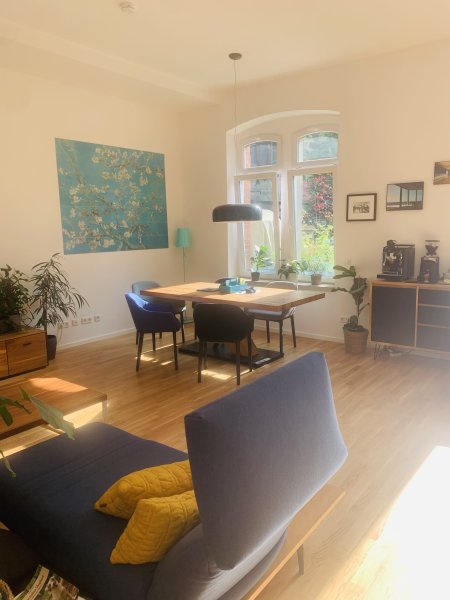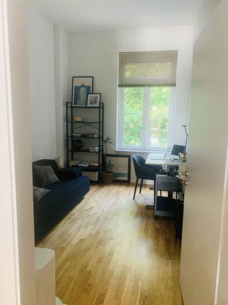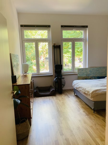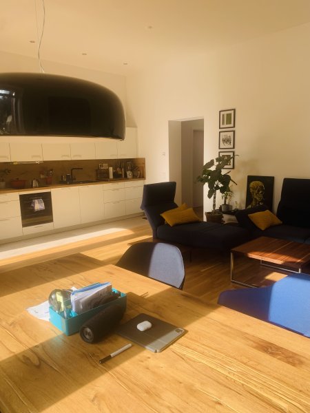 Die Wohnung bietet auf 118 qm ein großzügiges helles Wohnzimmer, ein geräumiges helles Schlafzimmer, ein Badezimmer mit Dusche und ein Gäste-WC, ein Arbeits/ Gäste/ oder Kinderzimmer, einen zusätzlichen Abstellraum und eine weiße Einbauküche.