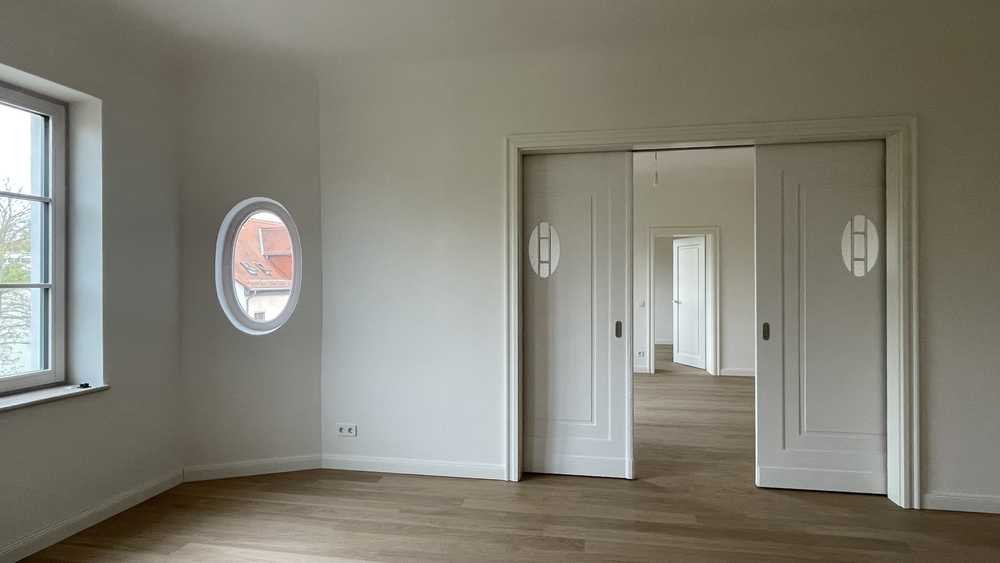 Das 1912 im schlichten Jugendstil und mit Elementen der aufkommenden Moderne erbaute Wohnhaus wurde nach über 100 Jahren und zwei Weltkriegen nun erstmals grundlegend saniert. Unter Achtung des Denkmalschutzes wurden wesentliche gestalterische Elemente behutsam erhalten und wieder aufgenommen. Ein Schwerpunkt war die nachhaltige energetische Ertüchtigung mit u.a. dreifach verglasten Schallschutzfenstern und Fußbodenheizungen mit Erdwärmepumpe. Wert gelegt wurde auf die Verwendung nachhaltiger, nicht brennbarer allergiefreundlicher Baustoffe. So ist ein Standard erreicht worden, wie ihn heute viele Neubauten nicht aufweisen – bereit für die nächsten 100 Jahre.