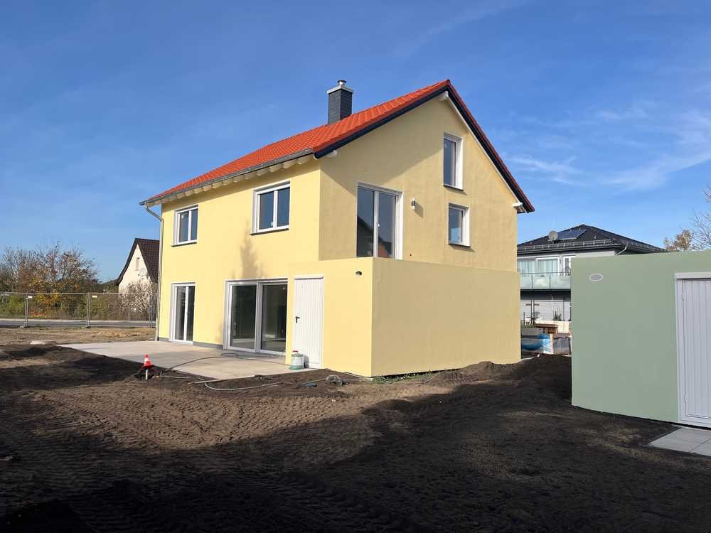 Bei dem zweistöckigen Einfamilienhaus handelt es sich um einen attraktiven Neubau, das durch eine gehobene Innenausstattung mit Fußbodenheizung besticht und ab dem 1.2.2025 bezogen werden kann. Im gesamten Haus sind großformatige Feinsteinzeugfliesen im Format 120 x 120 verlegt. Das Objekt besteht aus fünf attraktiven Zimmern jeweils mit LAN- Anschluss, einem Badezimmer sowie einem WC für Gäste und einem Balkon. Hinzu kommt ein Speicherboden mit 35 qm ( nicht in der qm- Berechnung enthalten ) Geheizt wird mit einer Wärmepumpe. Die Installation einer Solaranlage ist vorbereitet. Auch das dazugehörige Grundstück mit der knapp 40 qm großen Terrasse und Garten lässt durch seine Großzügigkeit keine Wünsche offen. Auf dem Gelände mit drei Neubauten befindet sich ein kleiner Spielplatz. Auf Wunsch kann eine Großraumgrage mit ca. 26 qm und 4 m Höhe für Wohnmobil o. ä. mit Wallbox dazugemietet werden. Die Immobilie ist barrierefrei und überzeugt durch den guten Schnitt, der sich auch für WGs eignet. Außerdem steht Ihnen eine PKW- Garage mit 21 qm und Wallbox zur Verfügung. Davor befindet sich zusätzlich ein Außenstellplatz. Das Wohnzimmer und das restliche EG kann mit einem Kaminofen zugeheizt werden. Die Miete für das hier angebotene Haus liegt bei monatlich 2.100 Euro einschließlich Nebenkosten.