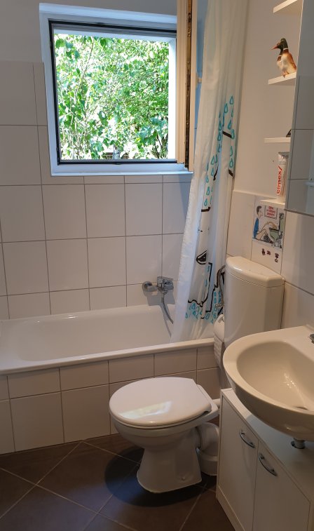 Neben deinem Zimmer gibt es in der Wohnung ein Bad, eine Küche .