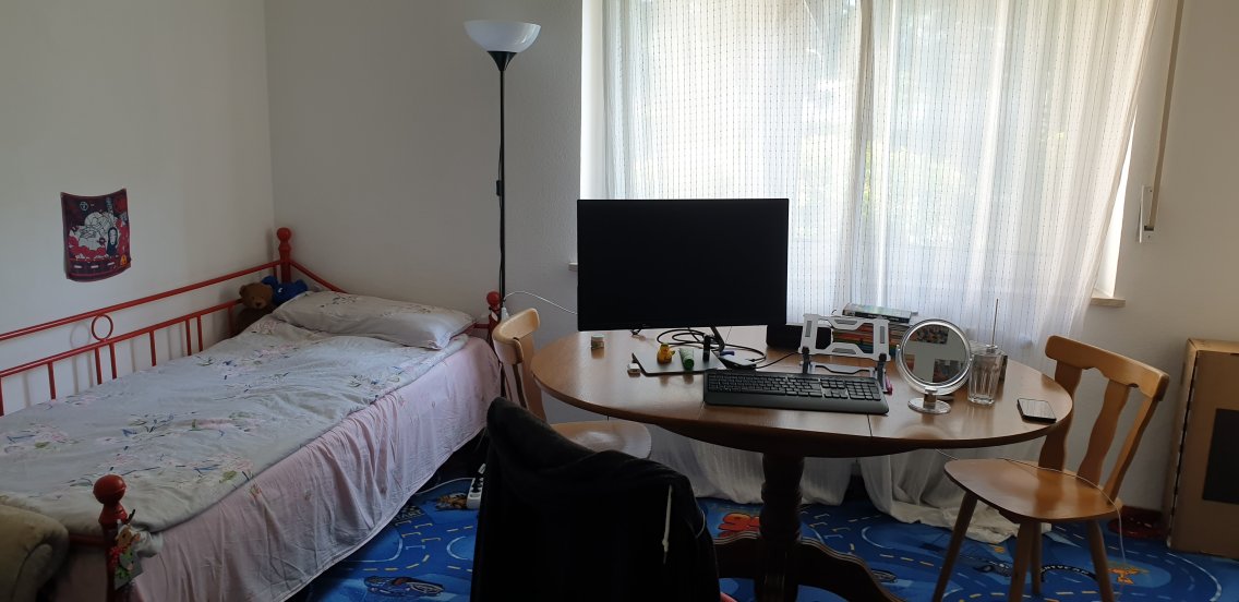 Das Zimmer ist 16 qm groß und möbliert. Es wird ein Kleiderschrank, ein Bett zur Verfügung gestellt. Das Zimmer beinhalten also bis auf deine persönlichen Dinge alles, was du zum Wohnen brauchst.