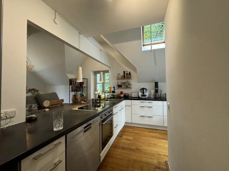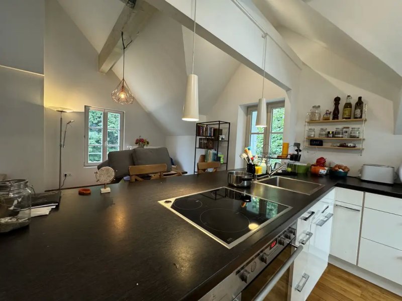 Die ab dem 15.12.2024 bezugsfreie 5 Zimmer Maisonette-Wohnung, bestehend aus 4 Schlafzimmern einem Flur, einem Bad, dem Gäste WC, sowie einem großzügigen Wohnzimmer mit offener Küche im Obergeschoss, besticht durch den Charme der umliegenden Parkanlage des Von-Halfern-Parks und die dazugehörigen, geschichtsträchtigen Nachbargebäude des ehemaligen