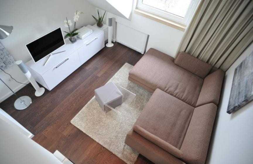 Top Wohnung: Anders als in normalen 1-Zimmer-Wohnungen entsteht durch den Maisonette-Zuschnitt eine zweiteilige Wohnung mit getrenntem Wohn- und Schlafbereich.
