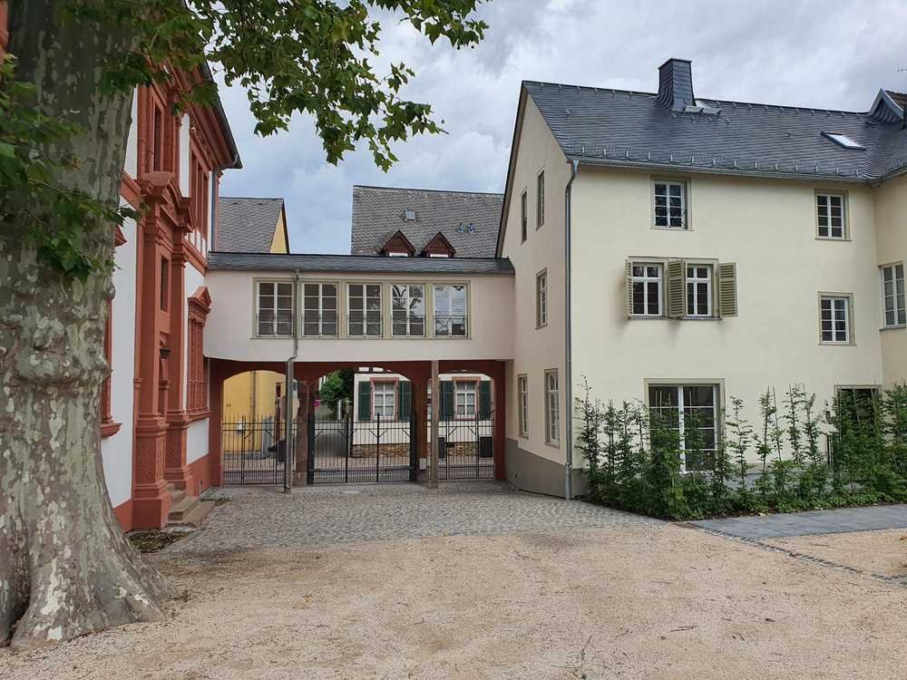 Es ist zentral in der Eltviller Altstadt gelegen und bietet durch seine Nähe zur Uferpromenade einen beeindruckenden Rheinblick sowie eine tolle Aussicht in den an seinen historischen Zustand angelehnten neu geplanten Park des Langwerther Hofes.