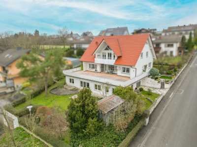 Die große Erdgeschosswohnung besteht aus 5 Zimmern, sowie einer Küche und einem Badezimmer. An der Südseite, zu der auch die Terrasse anschließt, erstreckt sich über drei Zimmer eine lange Fensterfront, die viel Licht in den Wohnbereich hineinlässt. Durch den vorstehenden Balkon der Dachgeschosswohnung bleibt das große Wohn- (oder Ess-) Zimmer der Erdgeschosswohnung jedoch vor direkter Sonneneinstrahlung im Sommer geschützt. Die Küche ist voll ausgestattet mit Herd, Ofen, Spülmaschine, Kühlschrank und Vorratsschrank. Das Badezimmer wurde erneuert und ist barrierefrei. Die Wohnung verfügt über einen Kaminanschluss, bei Interesse kann nach Absprache ein Holzofen errichtet werden.