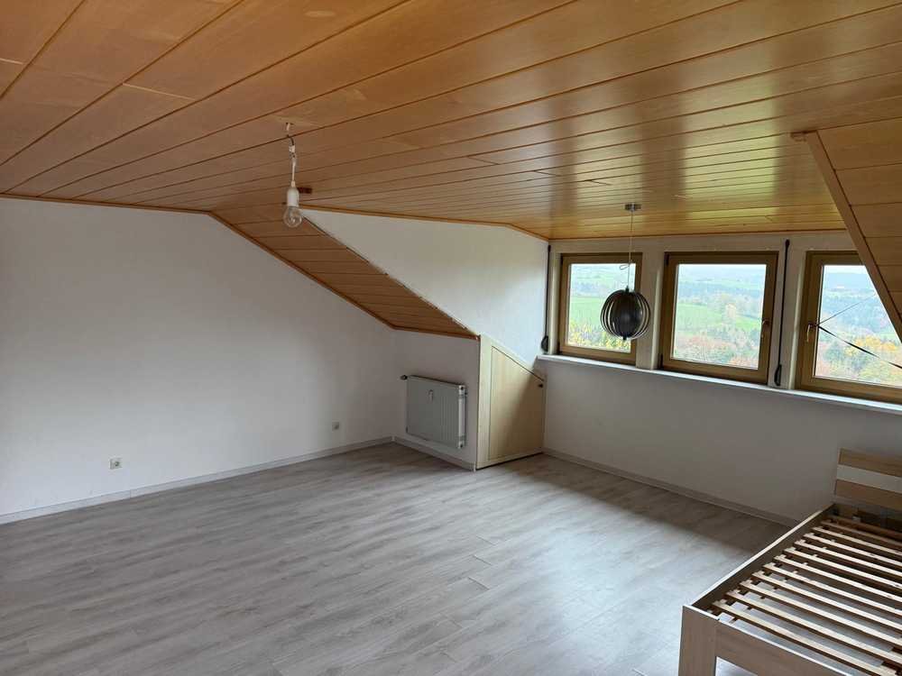 wir vermieten hier eine tolle sanierte Dachgeschosswohnung, mit einer unglaublich Aussicht mit 2 Balkone, eine ruhige Umgebung mit viel Freiraum in der Natur geboten wird.