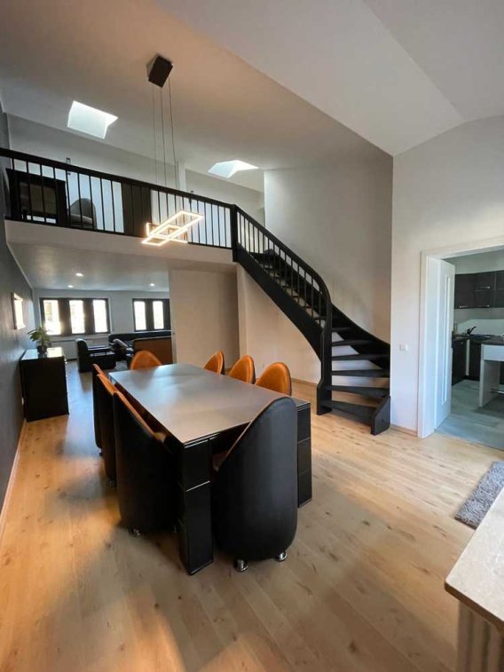Die geräumige Wohnung befindet sich im Dachgeschoss eines Mehrfamilienhauses und verfügt über keinen Aufzug.