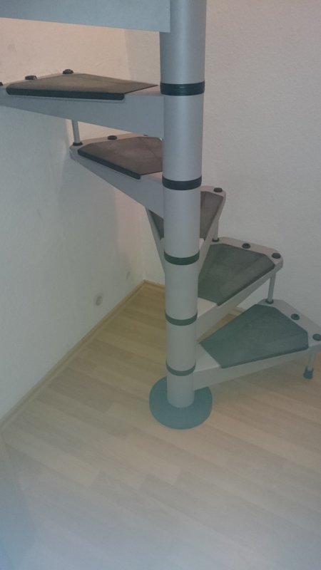 Die Mietfläche von ca. 42 qm teilt sich auf in: Duschbad, Diele mit darüberliegendem "Kofferabteil", Küche mit Spüle, Kühlschrank und Herd, Wohn/Schlafzimmer, Kelleratelier (über Wendeltreppe erreichbar).